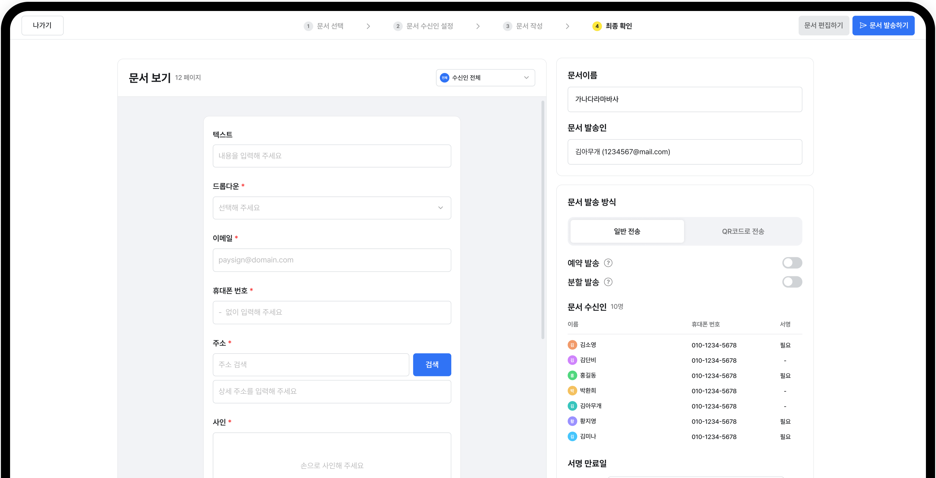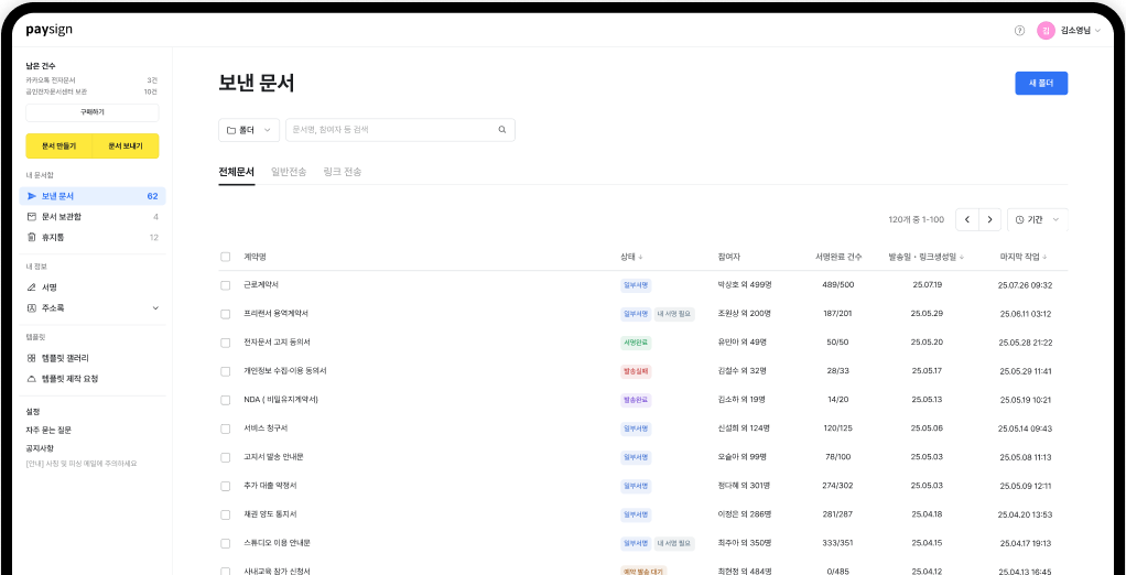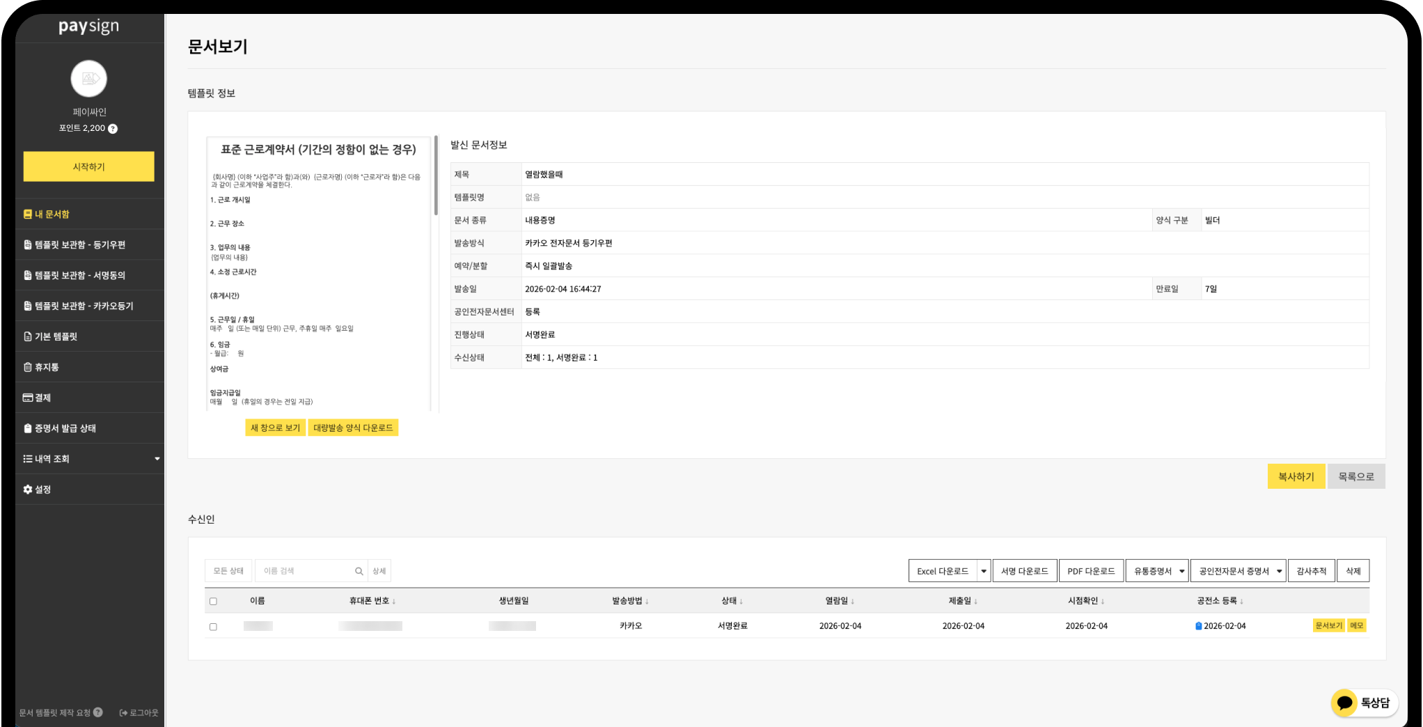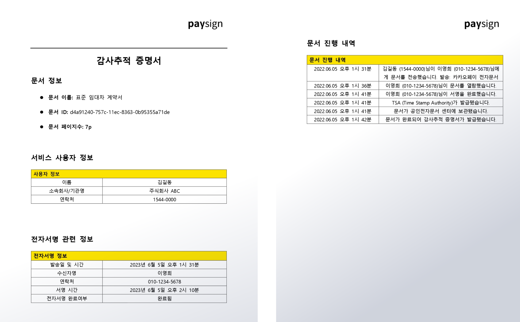 문서를 발송하고 수신자가 받은 기록, 서명한 기록 등