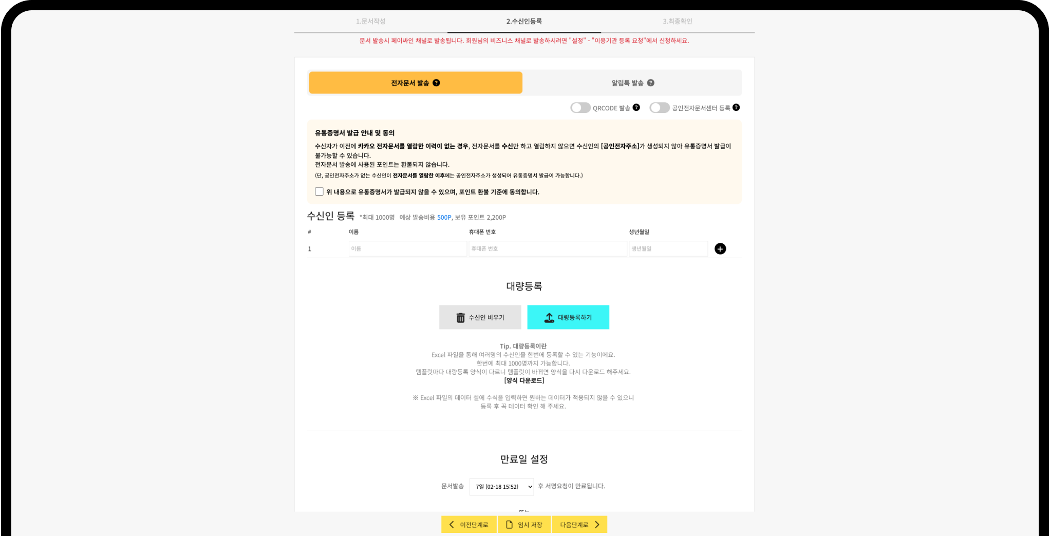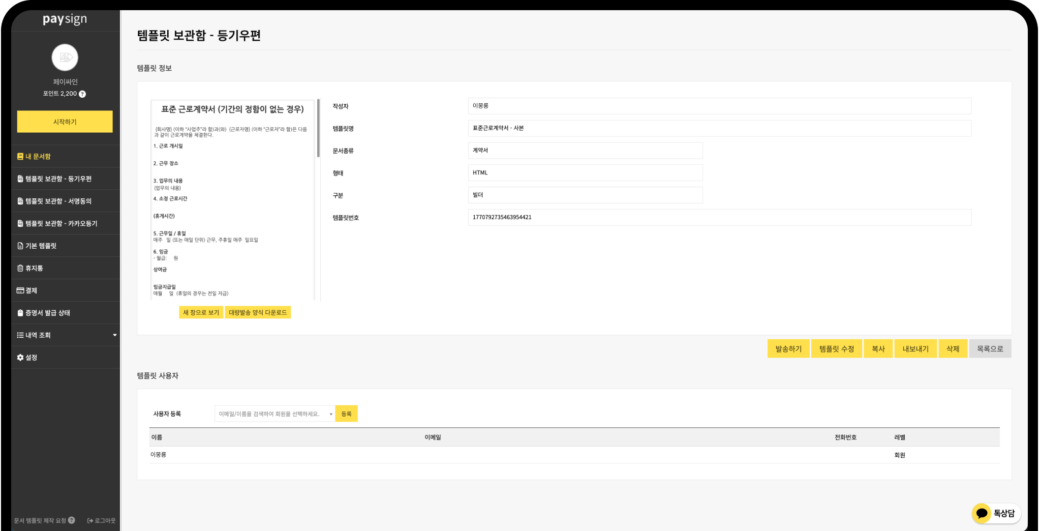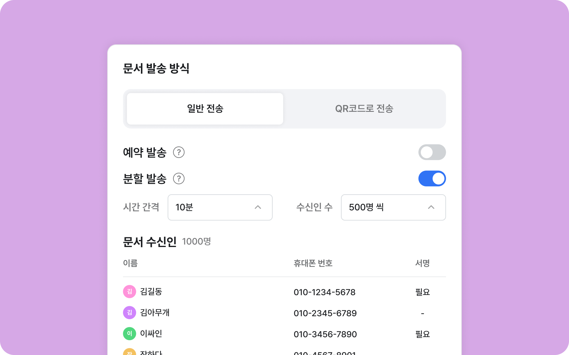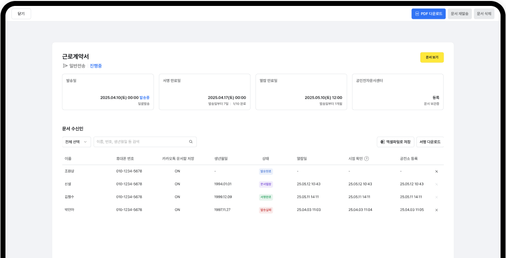 문서를 발송하고 수신자가 받은 기록, 서명한 기록 등