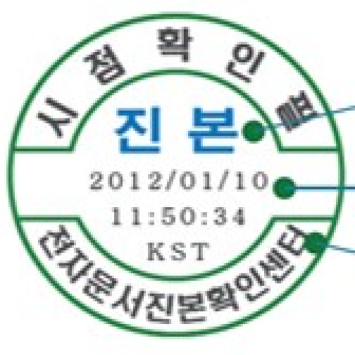 서명시점을 증명, 그 이후 불변경을 증명하는 전자적도장